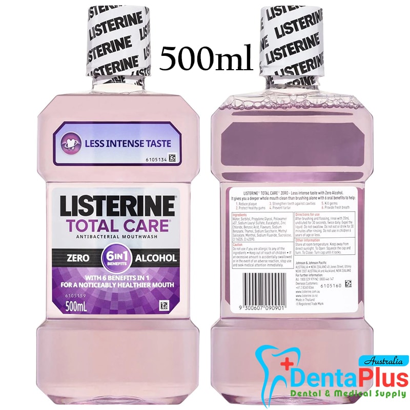 Listerine® Total Care® Zero has a less intense taste with zero alcohol. It gives you a deeper whole mouth clean, than brushing alone, with 6 oral health benefits to help: