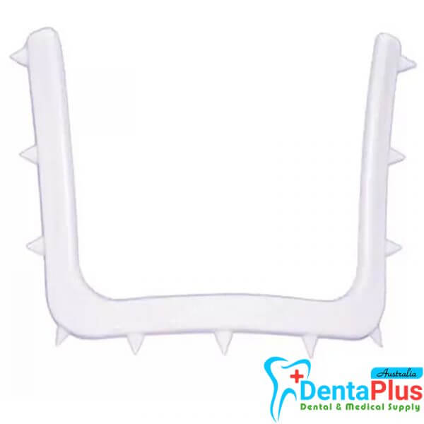 Anatomically contoured rubber dam frame for maximum patient comfort and safety.